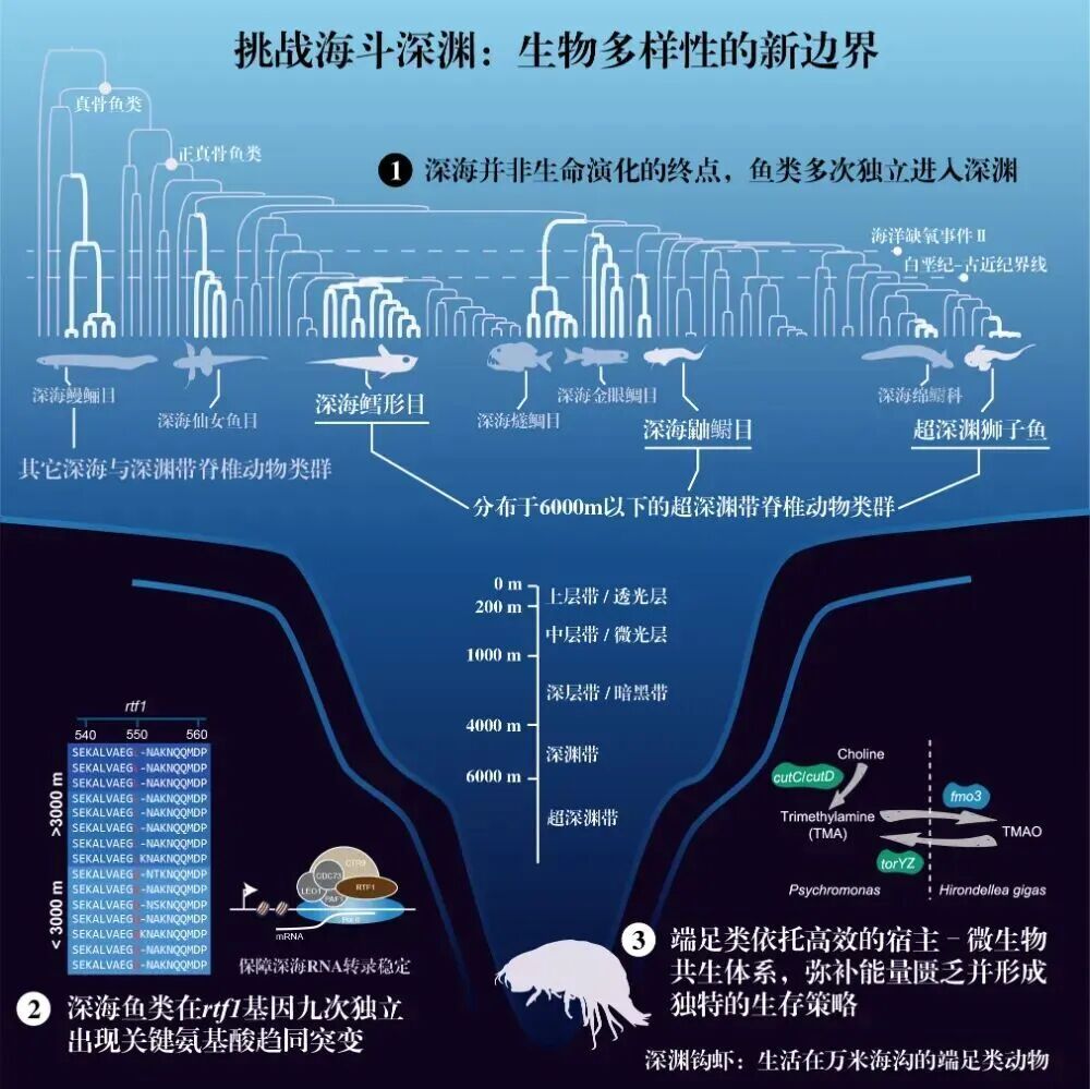 ▲生物多样性新边界探索:解码深渊动物演化过程和适应的遗传机制