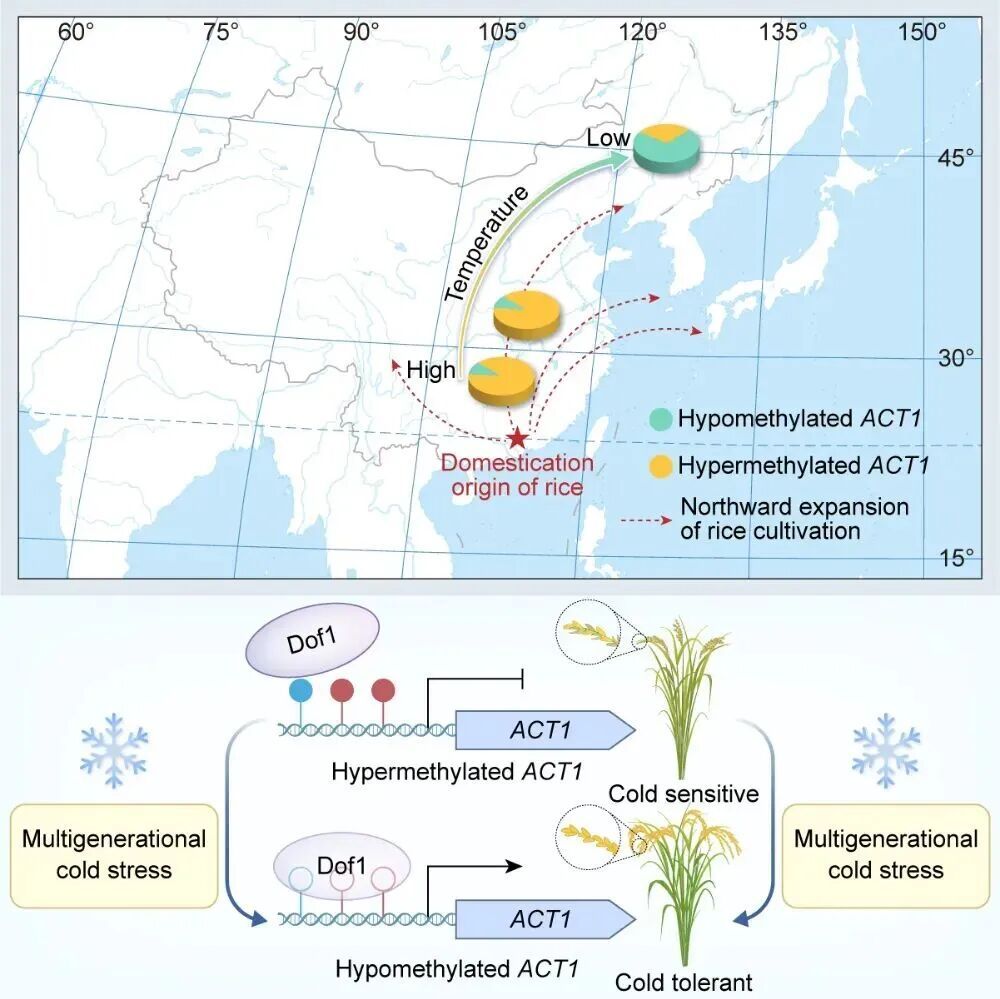 ▲低温诱导表观变异驱动水稻在高纬度地区的冷适应
