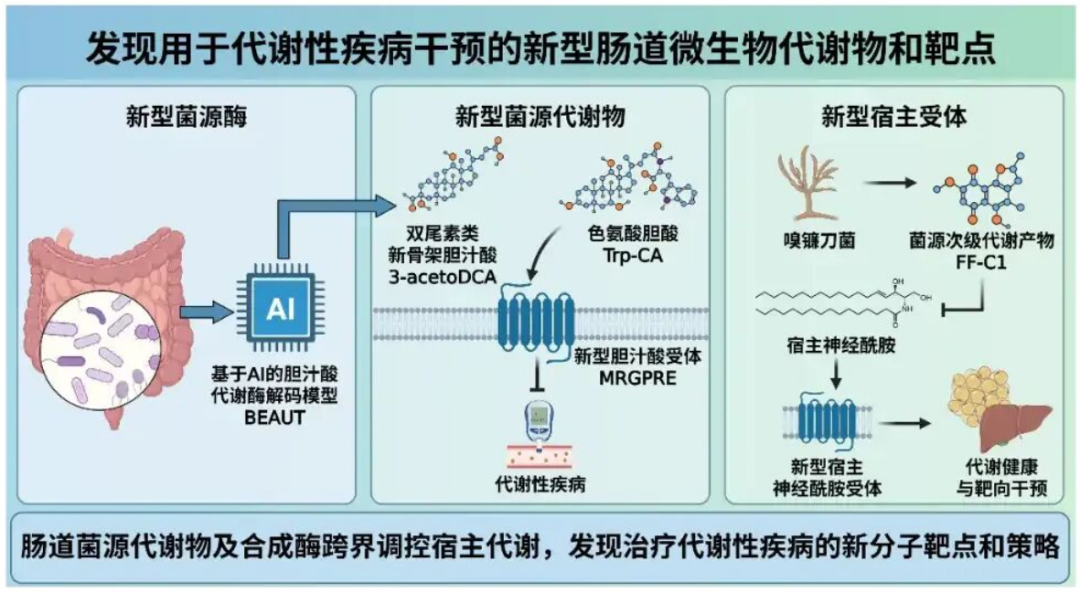 ▲发现用于代谢性疾病干预的新型肠道微生物代谢物和靶点