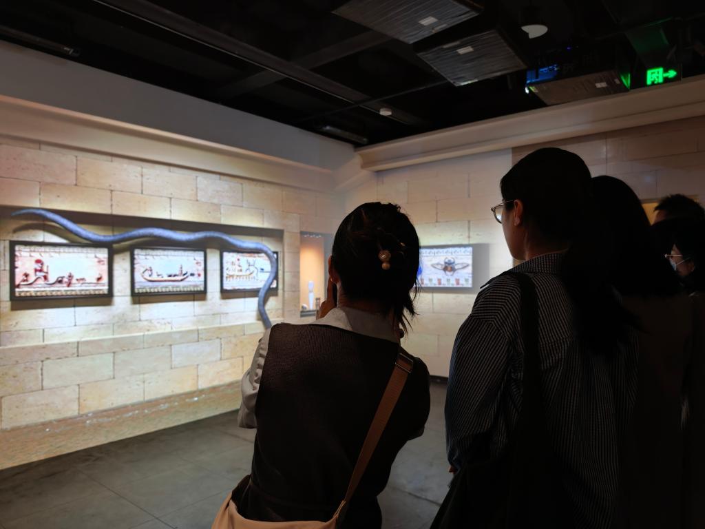 2月5日,观众参观“尼罗河的赠礼——古埃及文物与数字艺术体验展”。新华社记者 邓瑞璇 摄
