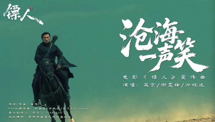 武侠动作大片《镖人》今日发布宣传曲《沧海一声笑》特别视频,在黄霑词曲的经典武侠旋律基础上融入全新说唱元素,由吴京、谢霆锋、万妮达联袂演唱。画面随旋律以155张剧照勾勒江湖群像:大漠风沙中策马疾行,刀光剑影里对峙奔袭。